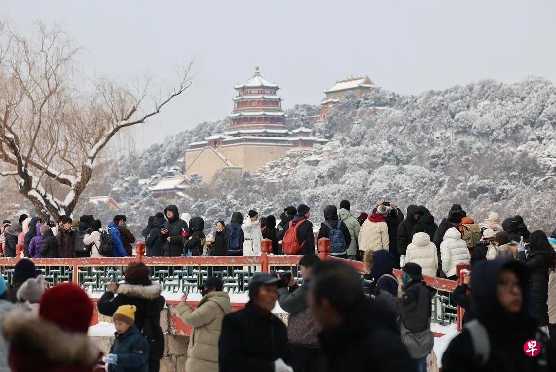 俗话说“三九四九冰上走”,“四九”即中国农历冬至后的第四个九天,与“三九”同为一年最冷的时段。据中新社报道,受偏东风影响,星期六早晨开始,北京大部分地区出现零星小雪或小雪。