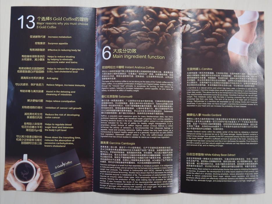 咖啡宣传资料中宣称饮用后出现失眠是常见反应,且如果头疼及心悸,则显示产品“正在进行身体内部排毒、改善血液循环”。实际上,这些都是西布曲明已知的副作用,商家误导了消费者。