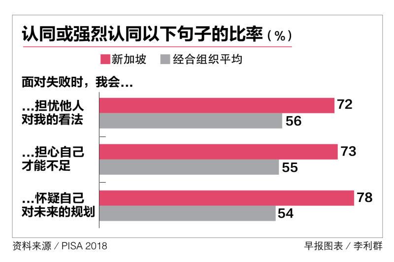 (早报讯)新加坡学生尽管学术表现优异,但对失败的恐惧也更大。最新的国际学生评估项目显示,超过七成的本地学生在面对失败时,不仅担心他人的眼光、怀疑自己的才能,甚至会质疑自己对未来的规划。