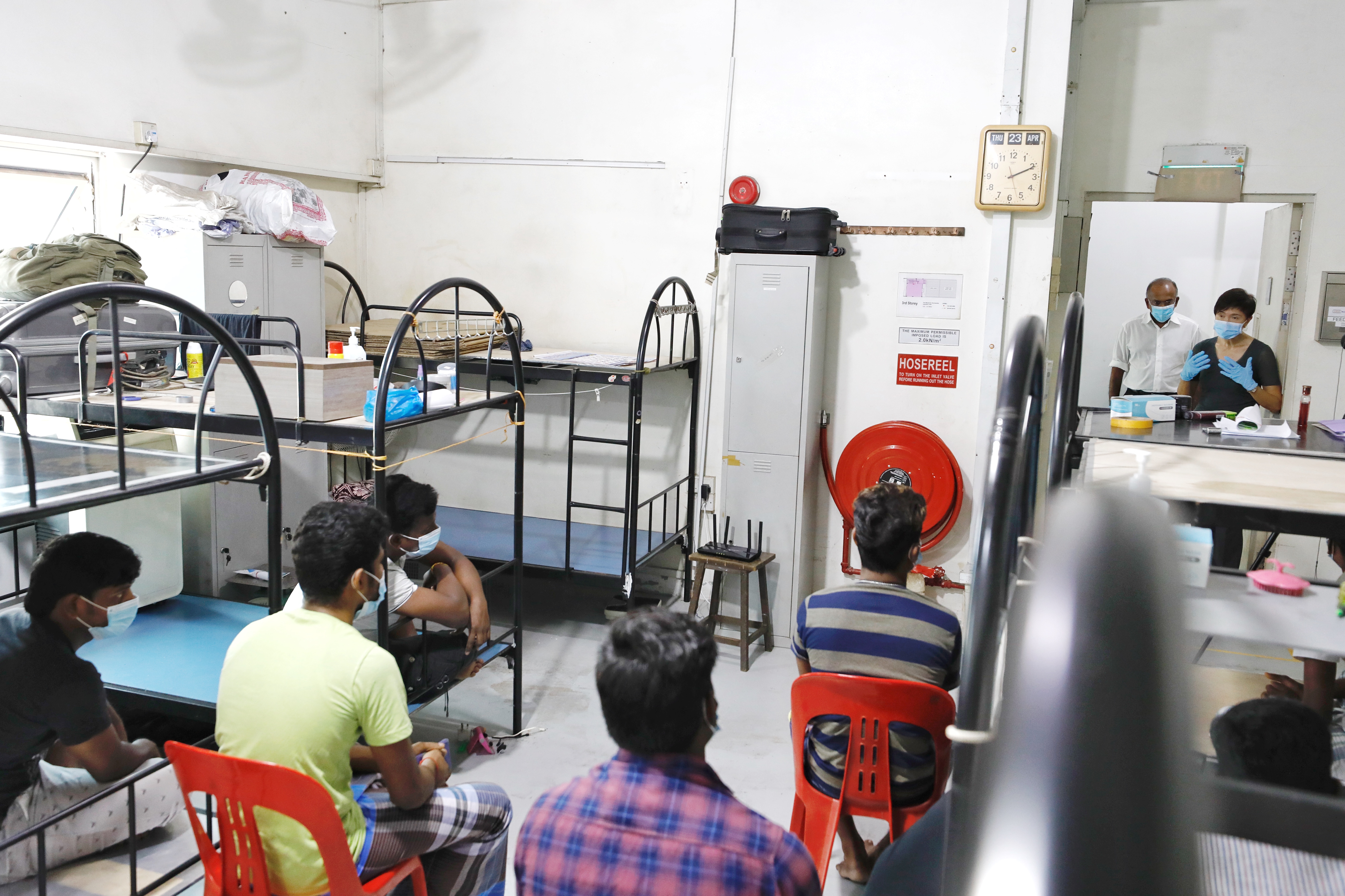 今天下午,内政部长尚穆根与人力部长杨莉明到宿舍慰问客工时,客工们情绪悲伤但冷静,并表示雇主有照顾好他们。
