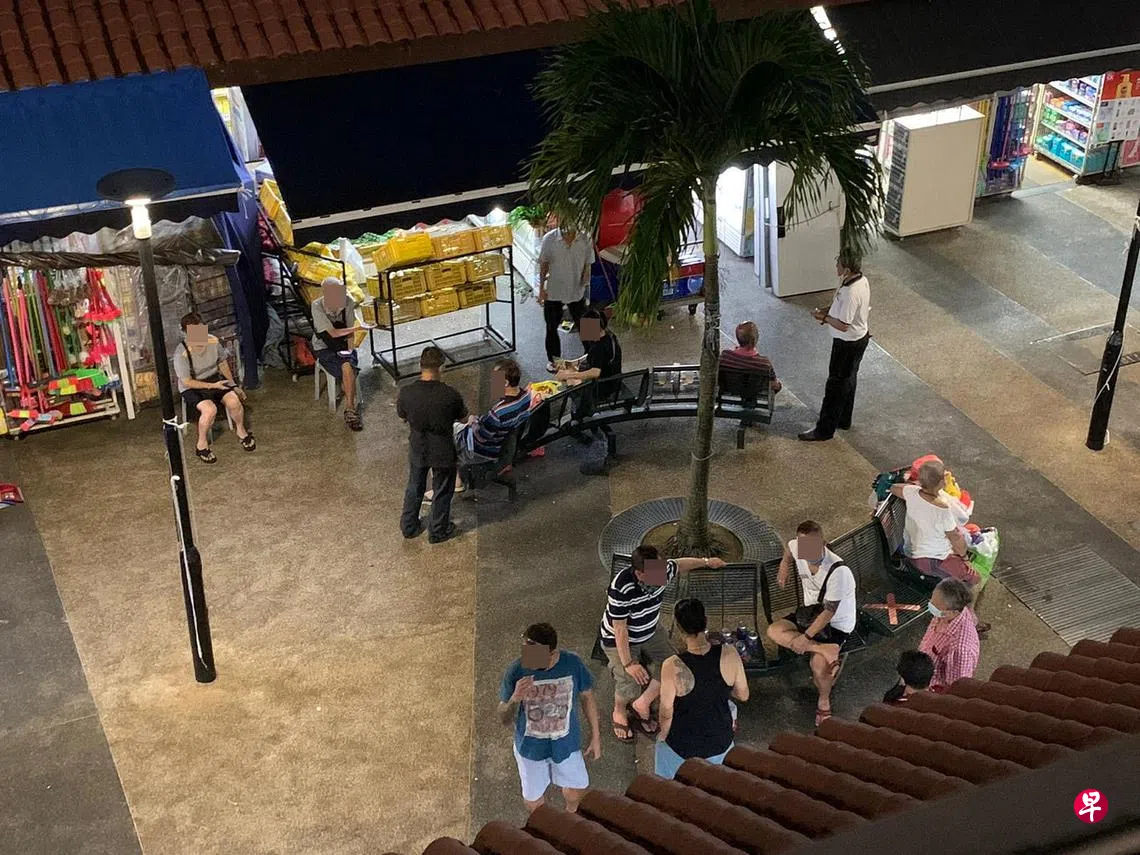 (早报讯)七八名阿叔每晚围坐组屋楼底群聚,人人手握啤酒谈天说地,还有人分享零食,被指无视安全距离等冠病条例。