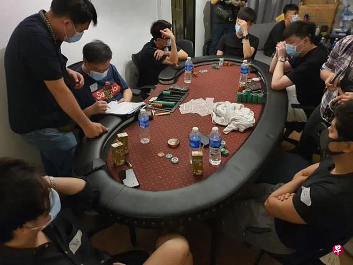 (早报讯)11名男女因涉嫌非法赌博活动、违反安全距离措施以及触犯滥用毒品法令,遭警方逮捕。