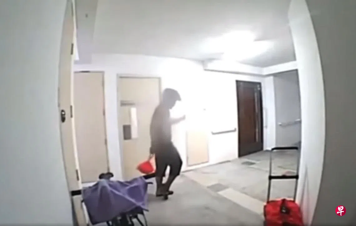 视频显示,送餐员带着头盔,手上提着一袋塑料袋,他模仿美国已故歌手麦可杰克森跳月球漫步舞步,倒退出走廊,随后在原地转了个圈后,以螃蟹横着行走的方式,走到顾客的门前。