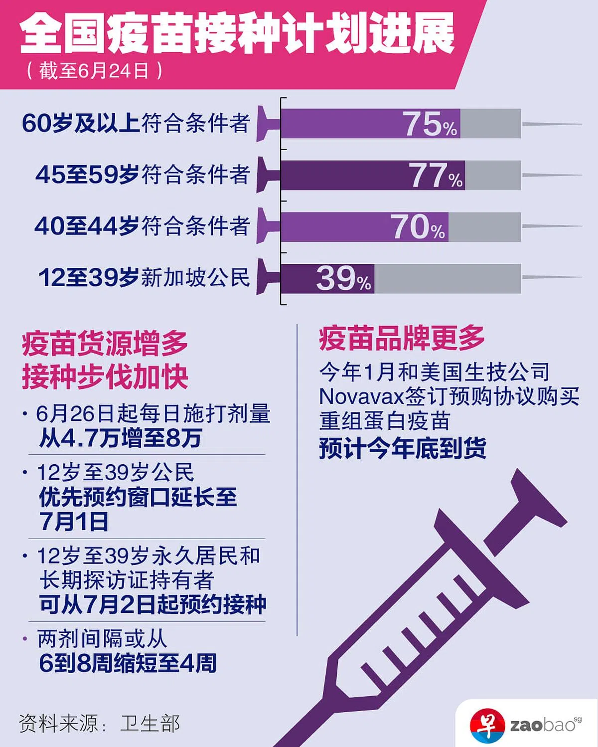 年龄介于12岁至39岁的新加坡公民中,有39%已接种或预约接种;学生群体的接种率也令人鼓舞,达83%。