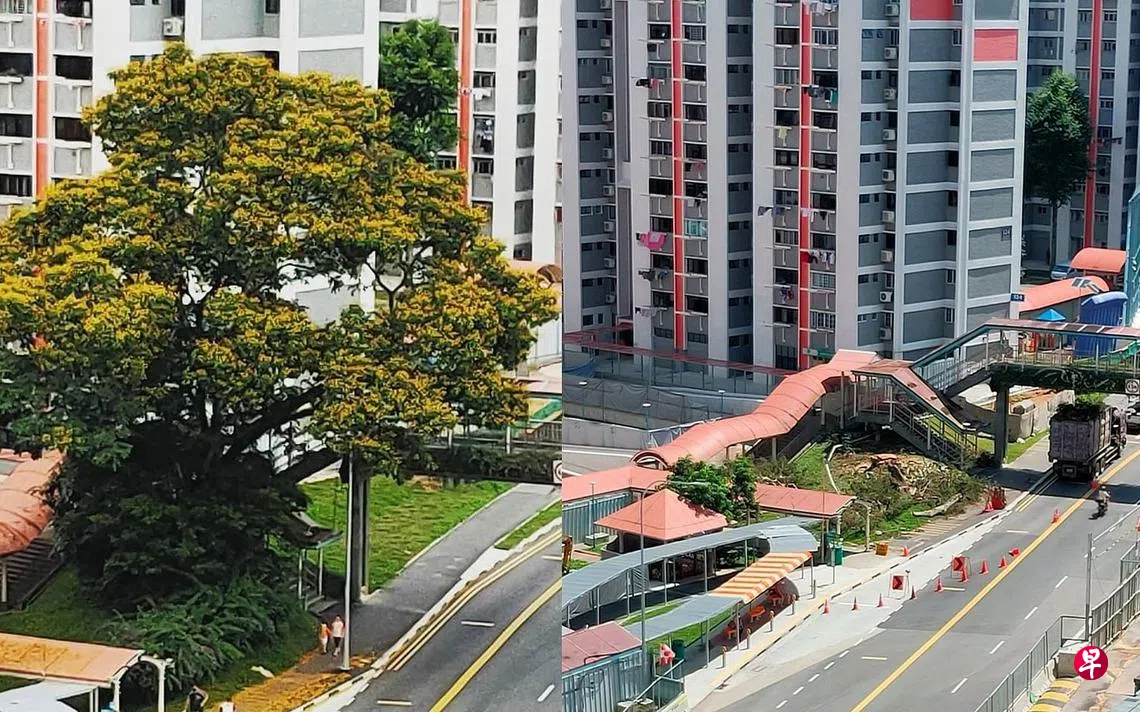 (早报讯)宏茂桥6道组屋区一棵茂密的黄花盾柱木(Yellow Flame)突然被砍除,引起网民议论纷纷。