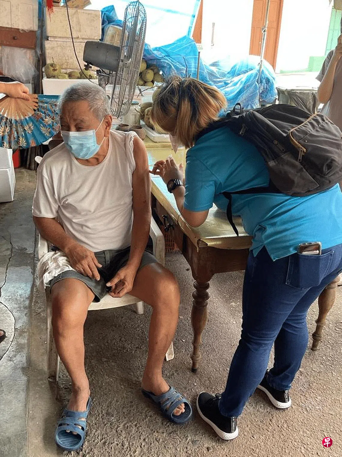 登门接种团队此次主要是为须待在家、行动较为不便或无法前往接种中心的乌敏岛居民提供冠病疫苗接种服务。
