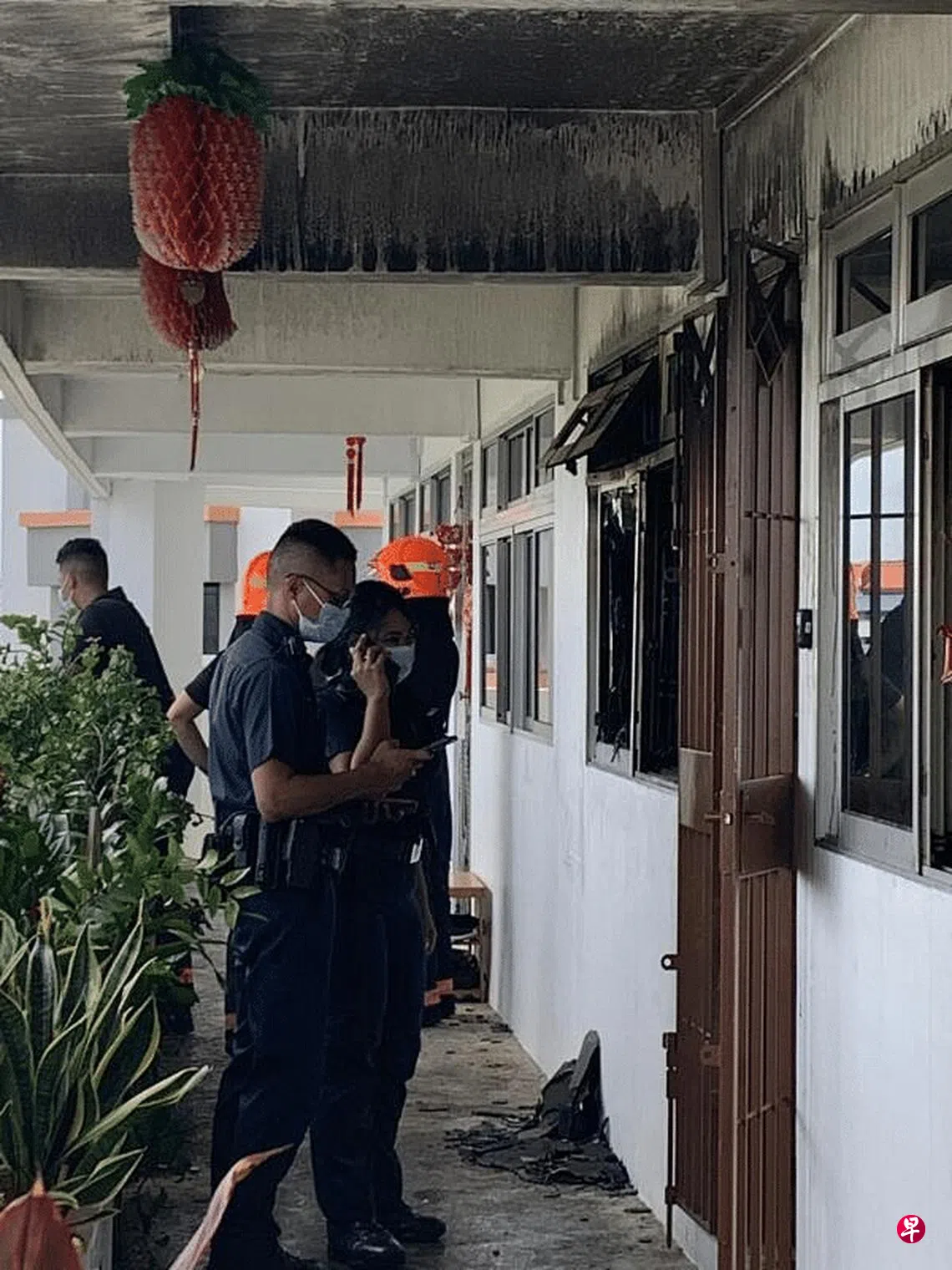 (早报讯)淡滨尼组屋卧室今早发生火患,民防人员破门救人。
