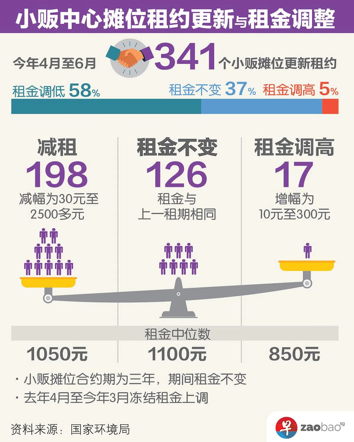 许连碹说:“我们注意到,无论幅度有多小,任何租金增长,即使是适中的(调整),也始终是敏感的,况且现在是一个具有挑战性的时期。经过最近2021年5月中旬至7月中旬的两个月免租期后,小贩若因租金上涨而继续面临财政困难,可向环境局寻求帮助,环境局将根据具体情况进行仔细审查。”