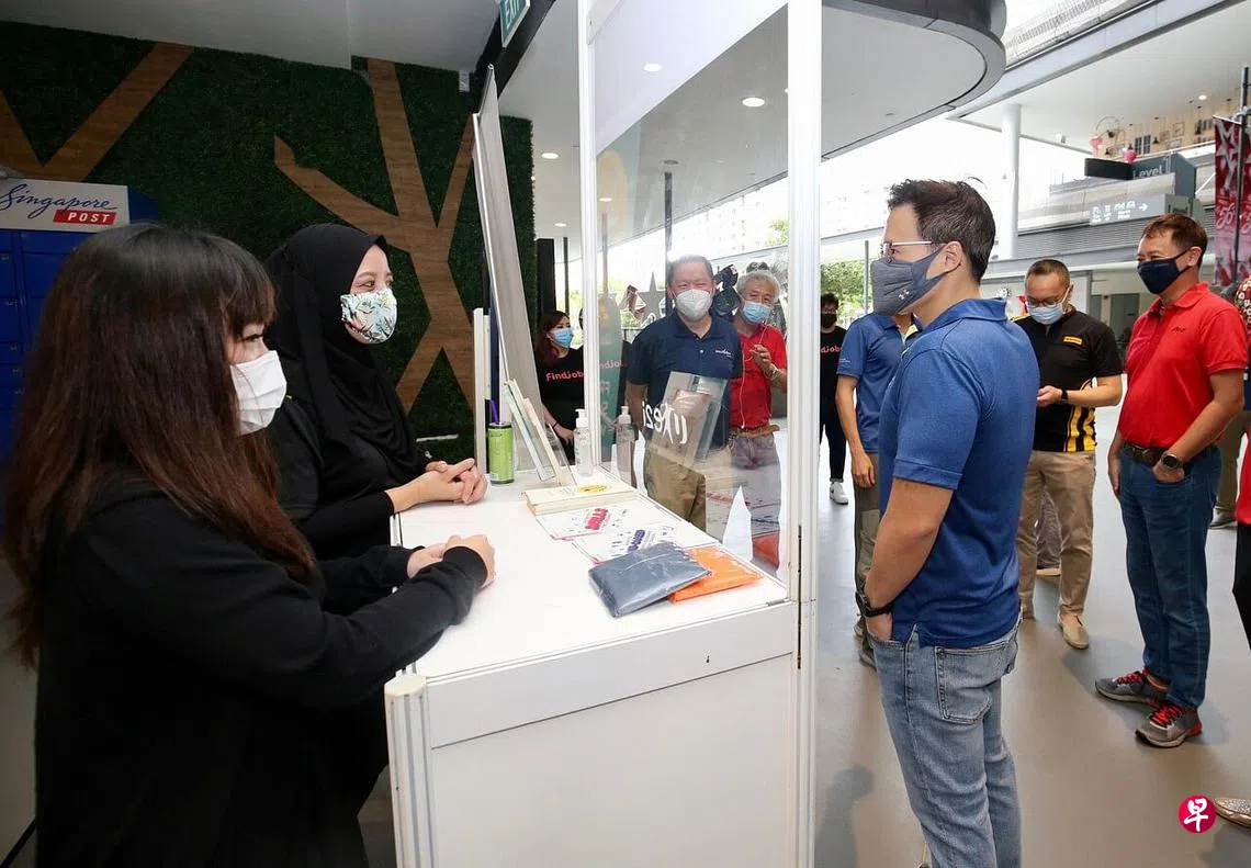 首个职业展昨天(7月9日)率先在东北区的淡滨尼天地(Our Tampines Hub)举办。也是淡滨尼集选区议员的东北区市长朱倍庆、e2i总裁陈财喜和马来亚银行(新加坡)总裁李兴福博士今早一同前往参观职业展,并与在场的求职者互动,听取反馈。