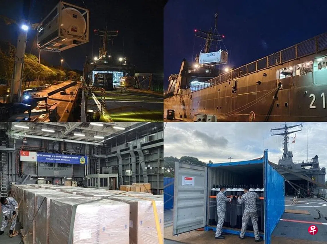 (早报讯)印度尼西亚冠病疫情严峻,我国再出动登陆舰,将40吨液态氧气、500瓶氧气筒和570个氧气浓缩器运送到印尼,以支援当地的抗疫工作。