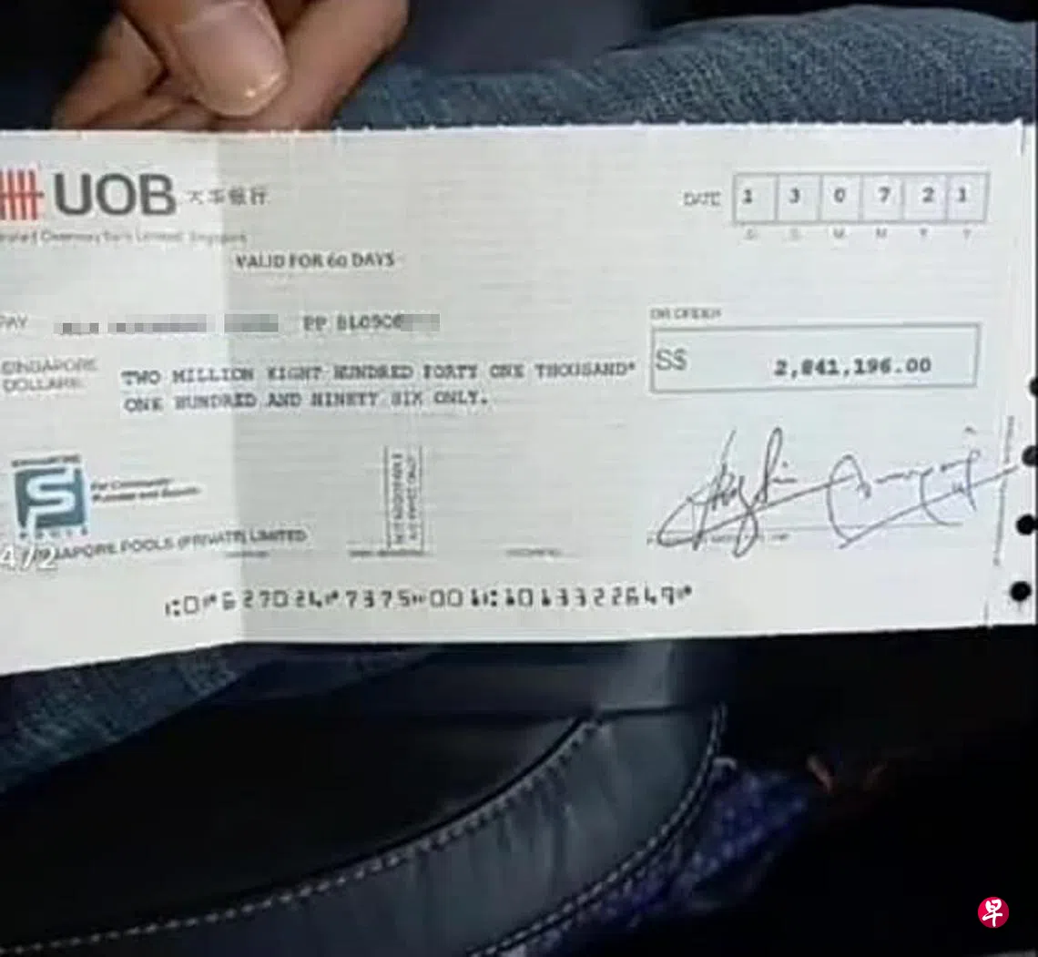 据称,这是一名在本地工作的客工上周赢得的头奖奖金。