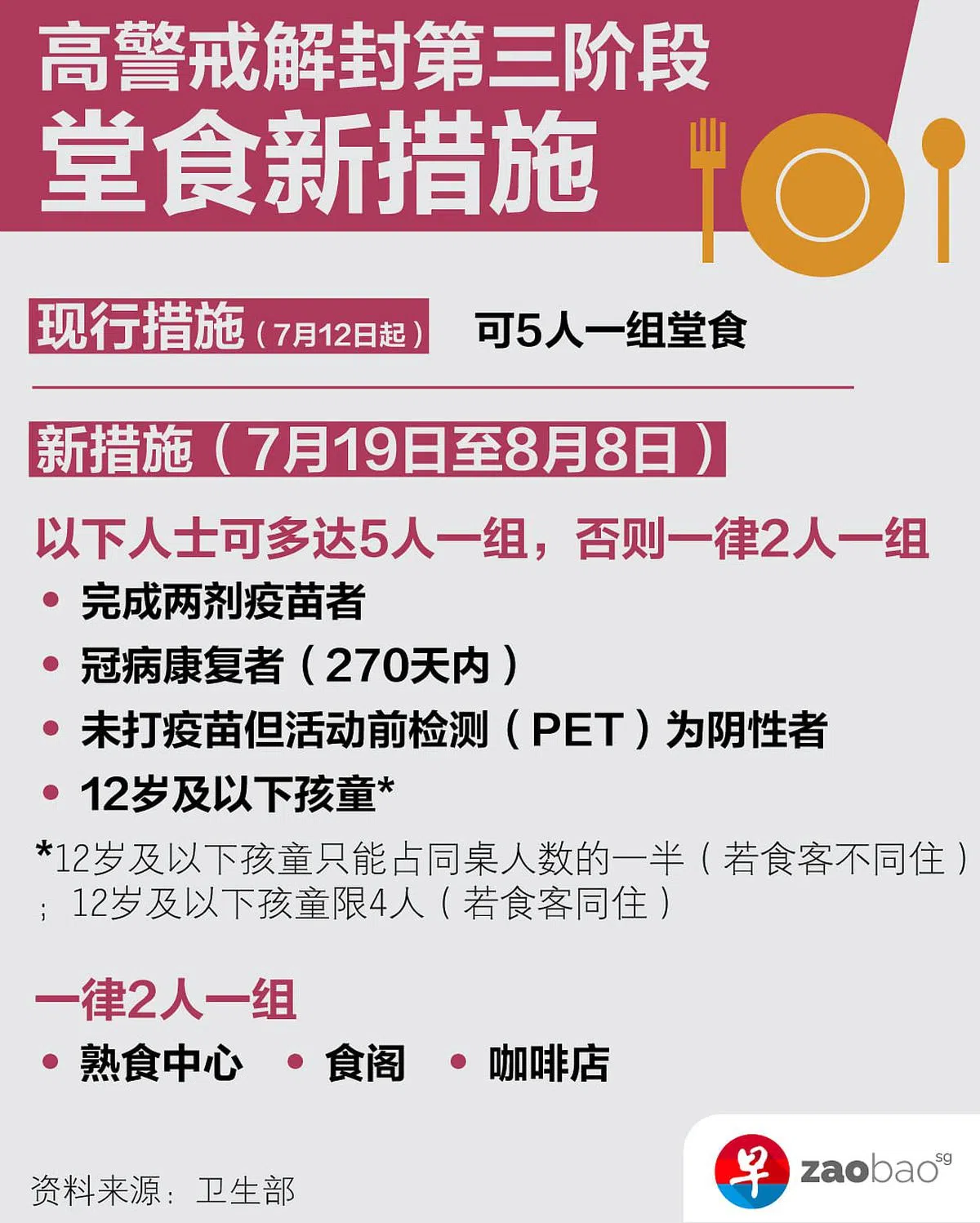 (早报讯)餐馆堂食人数下个星期一(7月19日)起收紧,但婚宴不受影响,可维持五人一桌。另外,进行不戴口罩的室内运动时,若没有活动前检测或出席者没有接种疫苗,每班人数顶限从50人缩减到30人,每组最多两人。