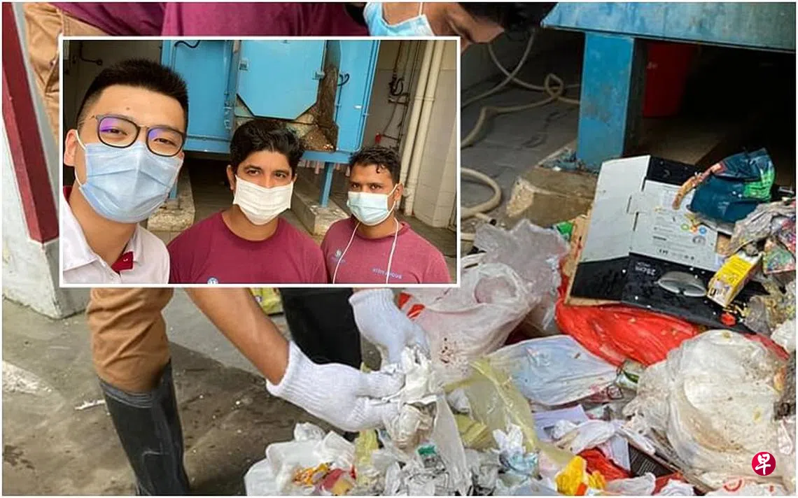 贴文显示,一名市镇会人员得知消息后,马上通知在组屋区值班的另两名工作人员,一行人接着立即到垃圾收集站,把垃圾倒出来,仔细翻找垃圾。
