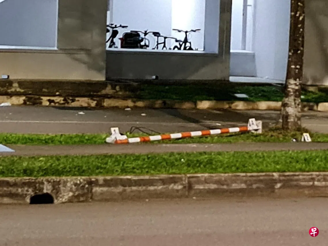 据读者提供的照片,约两米半高的柱子倒在路旁,黑色的电线外露,警员到场后,拍照存证并展开调查。