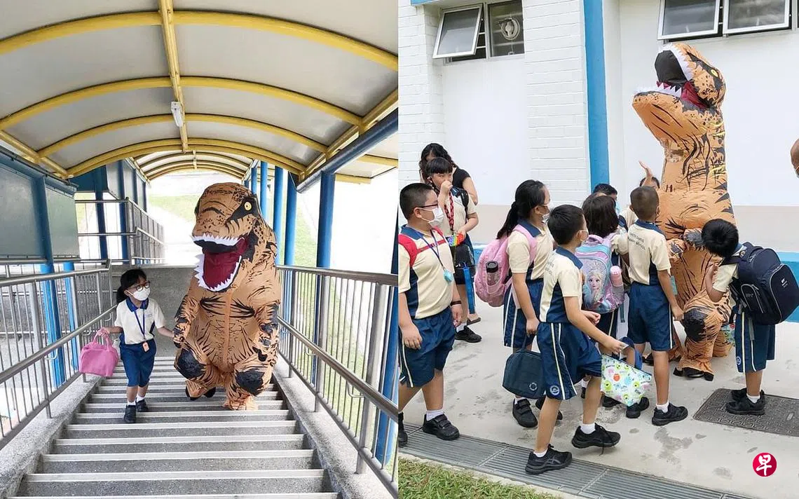 上周四(7月22日)下午约1时许,白沙小学附近“突然”有暴龙出没。原来是一名哥哥为了给妹妹惊喜,特地穿上暴龙装和妈妈一起接妹妹放学。妈妈拍下整个过程分享到面簿上,结果视频迅速爆红。