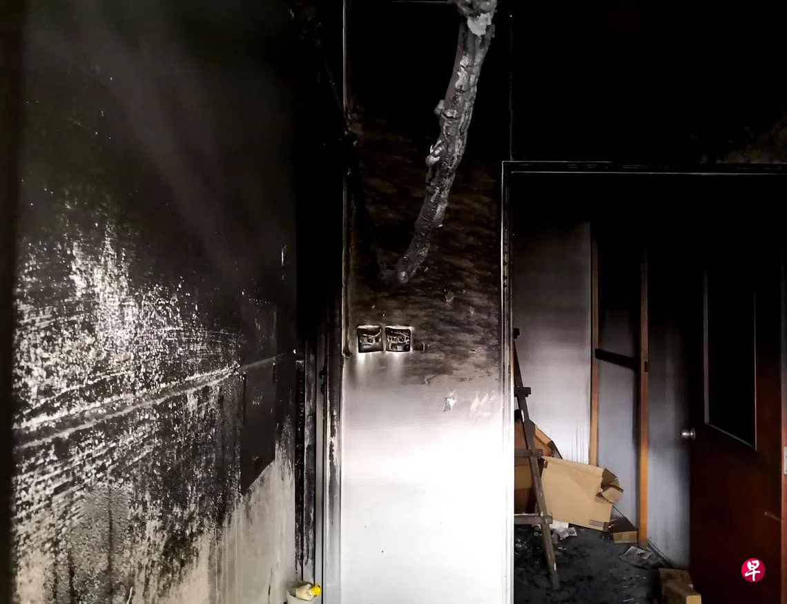 记者今早走访事发地点,发现失火单位内传来呛鼻烟味,单位内的窗口墙壁也被熏黑。