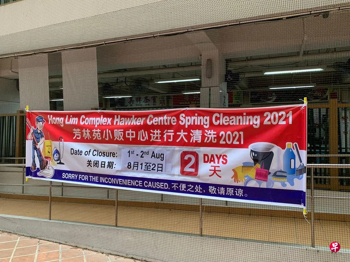 位于牛车水一带的芳林巴刹与熟食中心此前出现冠病确诊病例,并被列为感染群,从上月18日起关闭两周至31日。记者今早走访时发现现场挂出了横幅,指小贩中心会在今明两天(8月1至2日)进行大清洗,因此暂未对公众开放。