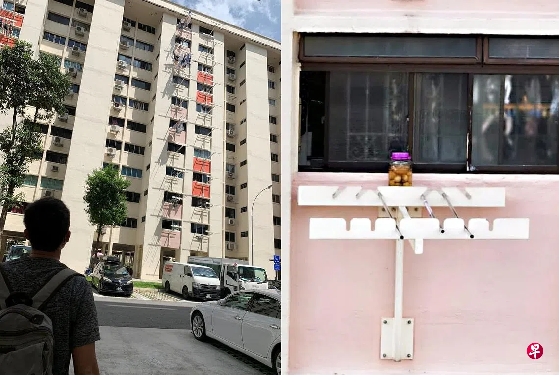 高楼住户将重达5公斤,用来浸泡柠檬的玻璃瓶放在晾衣架晒,引发居民担忧。涉事户答应取下,不会再犯。