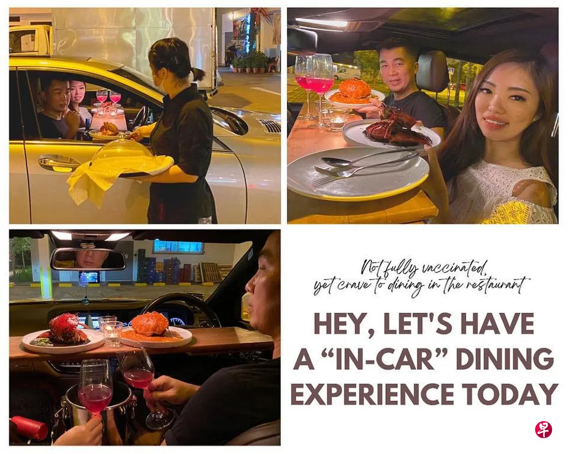 (早报讯)还未完成冠病疫苗接种的公众不能上餐馆,有餐饮业者想出新“花样”,推出“在车堂食”的服务。
