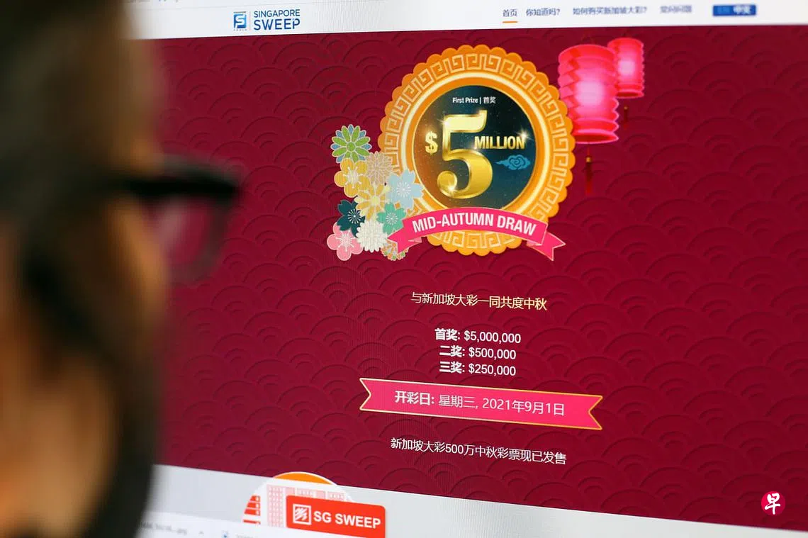 疫情当前行情坏,不少市民咬紧牙根努力工作之际,也多多少少买些万字票或多多,希望获得财神爷眷顾,“舒缓”一下荷包。新加坡博彩公司如今就为小市民们带来了好消息,根据其官方网站,9月份的新加坡大彩,将会与中秋节挂钩,首奖的奖金会是500万大元,比平时的230万高出超过一倍。