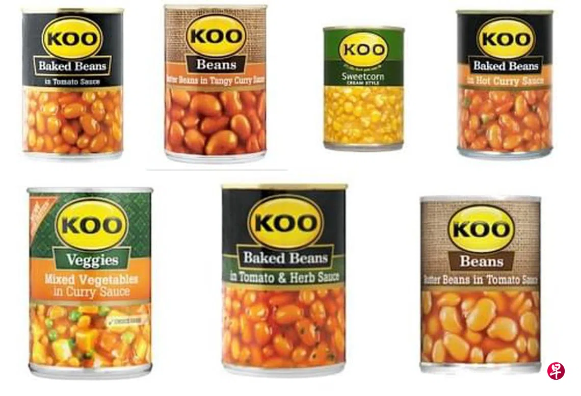 受影响的“KOO”罐头食品包括茄汁黄豆、玉米、咖喱黄豆和咖喱菜等。