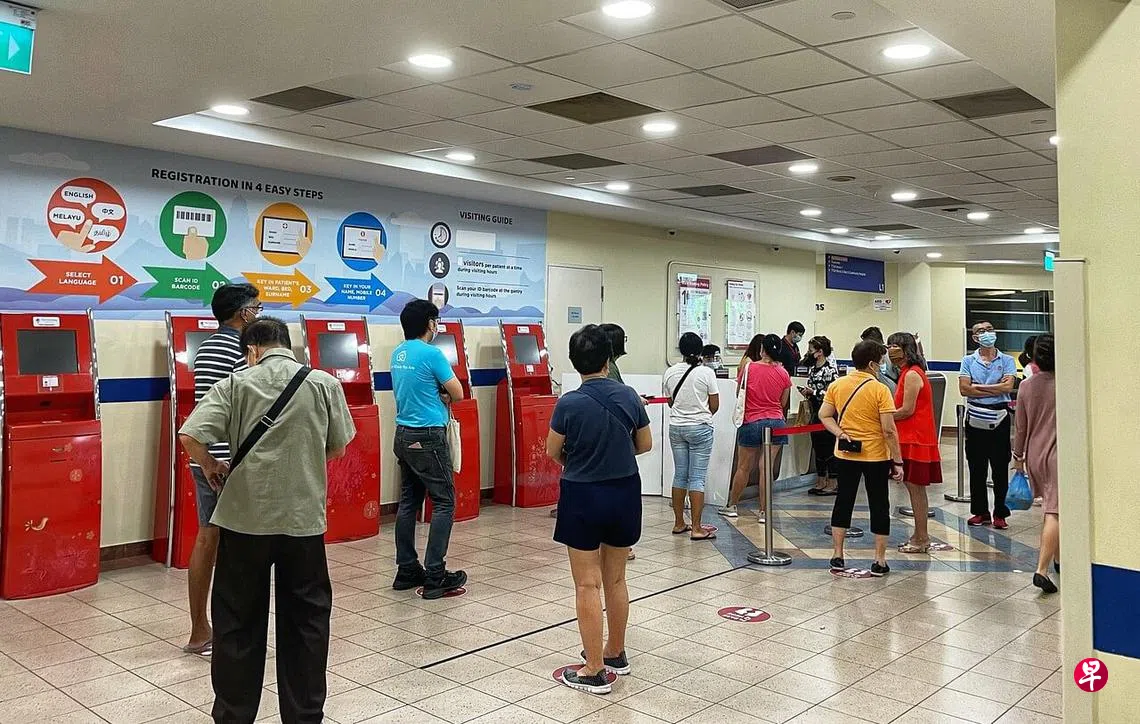 (早报讯)本地公共医院病房禁止探访两周后,今天(8月19日)重新开放。访客登记柜台大排长龙,有家属就有近一个月未见到住院的家人。