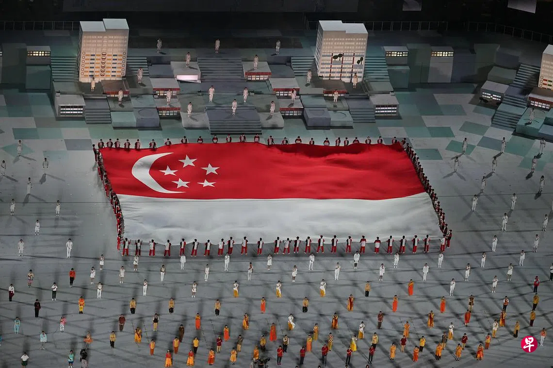 (早报讯)国庆庆典今年首次延期举行,星期六(21日)傍晚于滨海湾浮动舞台登场,由塞再利(Sezairi Sezali)演唱的国庆主题曲“Breathing City”(意为呼吸城市)开场。坐着沙发从升降台登台的他,就像是在家中观赏典礼的你我。