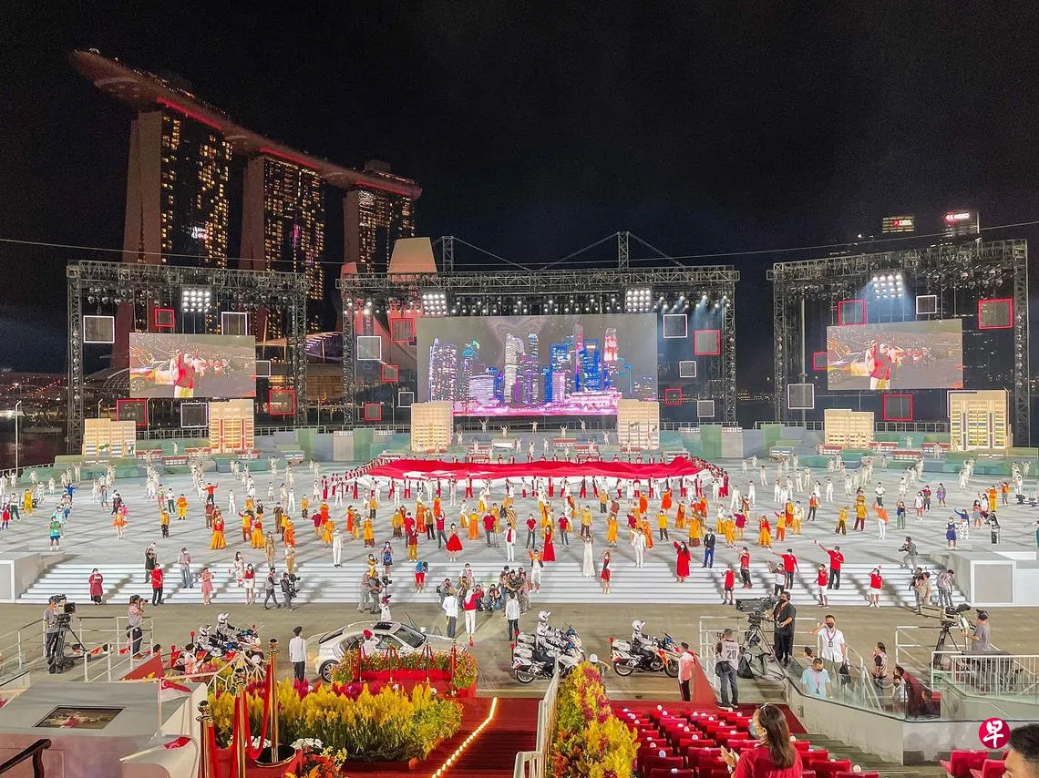张志贤说:“国庆庆典让我反思我们如何度过艰难的时期、继续和我们的朋友邻居一同面对困难、谢谢我们的前线人员……庆典也激励着我们要满怀信心共同面对未来。新加坡,我为你奉献(Count on me Singapore)。