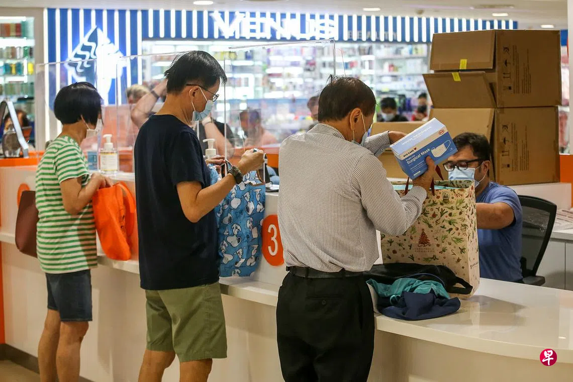 (早报讯)淡马锡基金会今日起向公众派发免费口罩,多个派发地点今天一大早就出现人龙。为了让年长者不必等太久,好些超市决定提前开始发口罩。