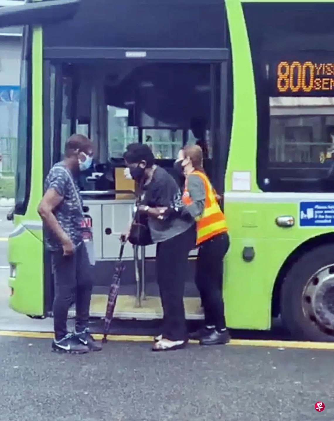 拍下这一幕的魏新泉(74岁,兼职健身教练)受访时告诉《联合晚报》,当时他搭乘800号巴士要去忠邦城吃早餐。