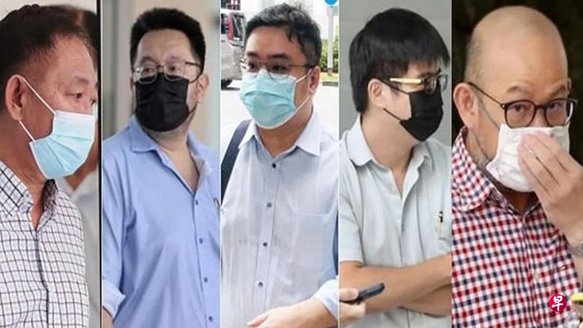 他们在案发时分别是Dowell Engineeering Services私人有限公司、Hong Hai Construction私人有限公司、Da Ho Foundation(新加坡)私人有限公司、Alliance Resources私人有限公司、Rui Feng Engineering & Construction私人有限公司、以及Housing Replacement私人有限公司的董事。这六人各面对4至10项协助他人伪造文书的罪名。