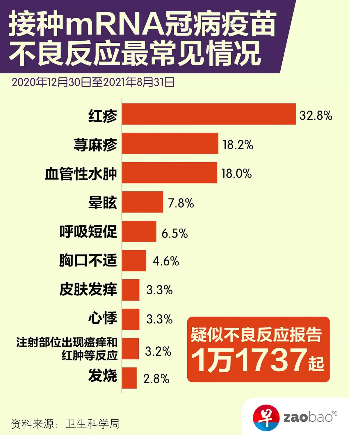 (早报讯)截至8月31日,卫生科学局共接获1万1737起辉瑞/复必泰或莫德纳疫苗的疑似不良反应报告,其中498起为严重不良反应。