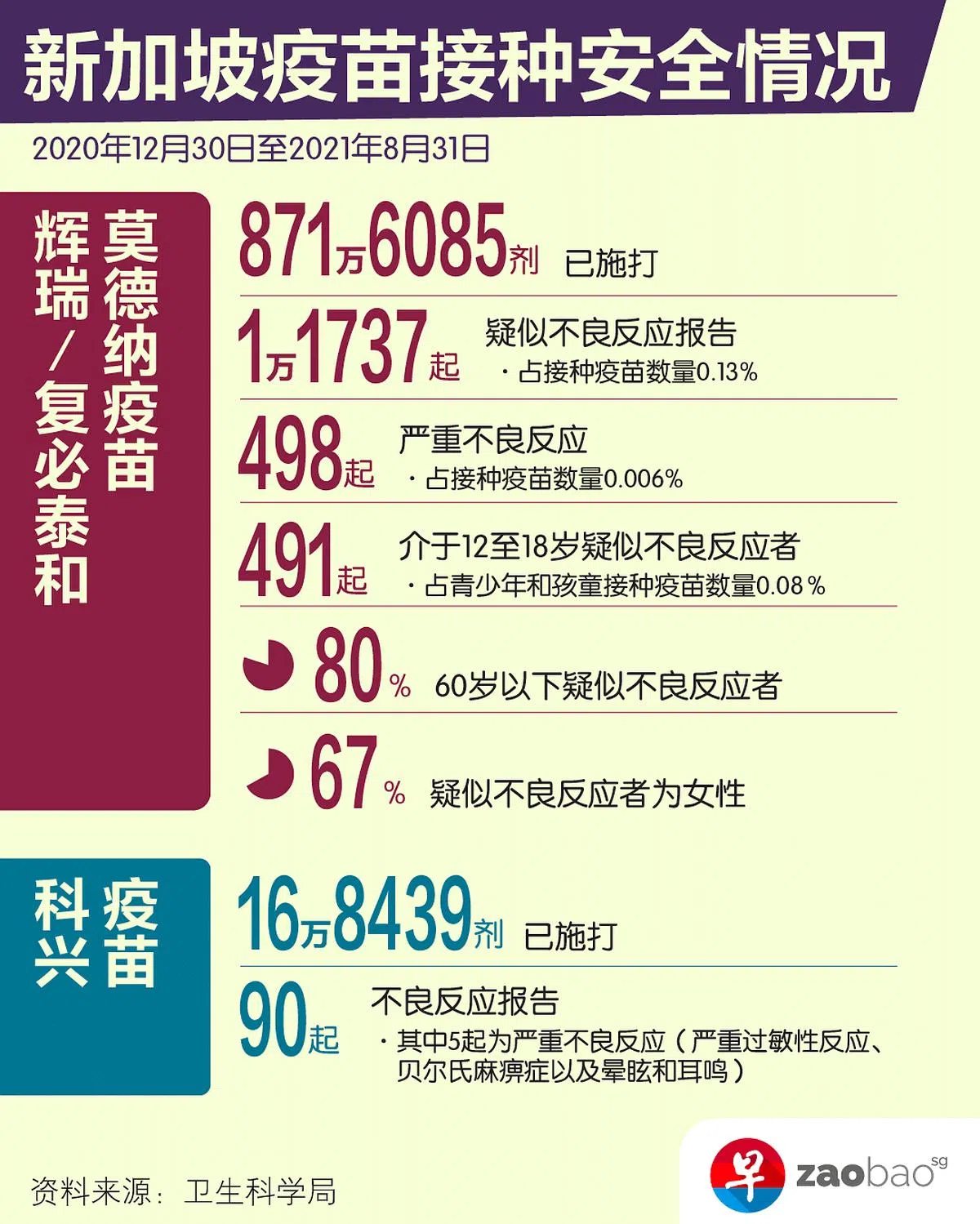卫生科学局今天(9月16日)发布第五份疫苗安全监测报告,从开始接种至今年8月31日,新加坡施打了超过871万剂辉瑞/复必泰或莫德纳疫苗,超过451万人接种至少一剂,约420万人完成两剂。