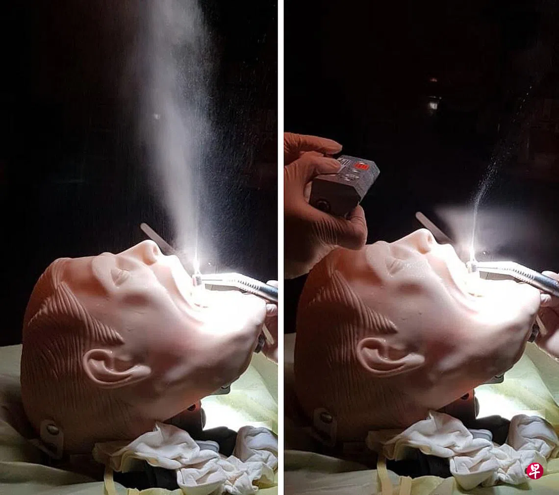 新加坡国立牙科中心(National Dental Centre Singapore,简称NDCS)研究员研发新装置,能在求诊者面部上方吹起高速气流,因此形成一层空气屏障,将牙科治疗过程中产生的气溶胶与牙医隔开,就如为求诊患者戴上一个“无形口罩”。