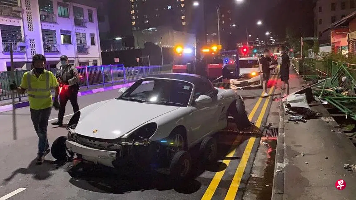 (早报讯)保时捷涉冲上人行走道,撞倒一排近10米长围栏,2路人受伤送院。