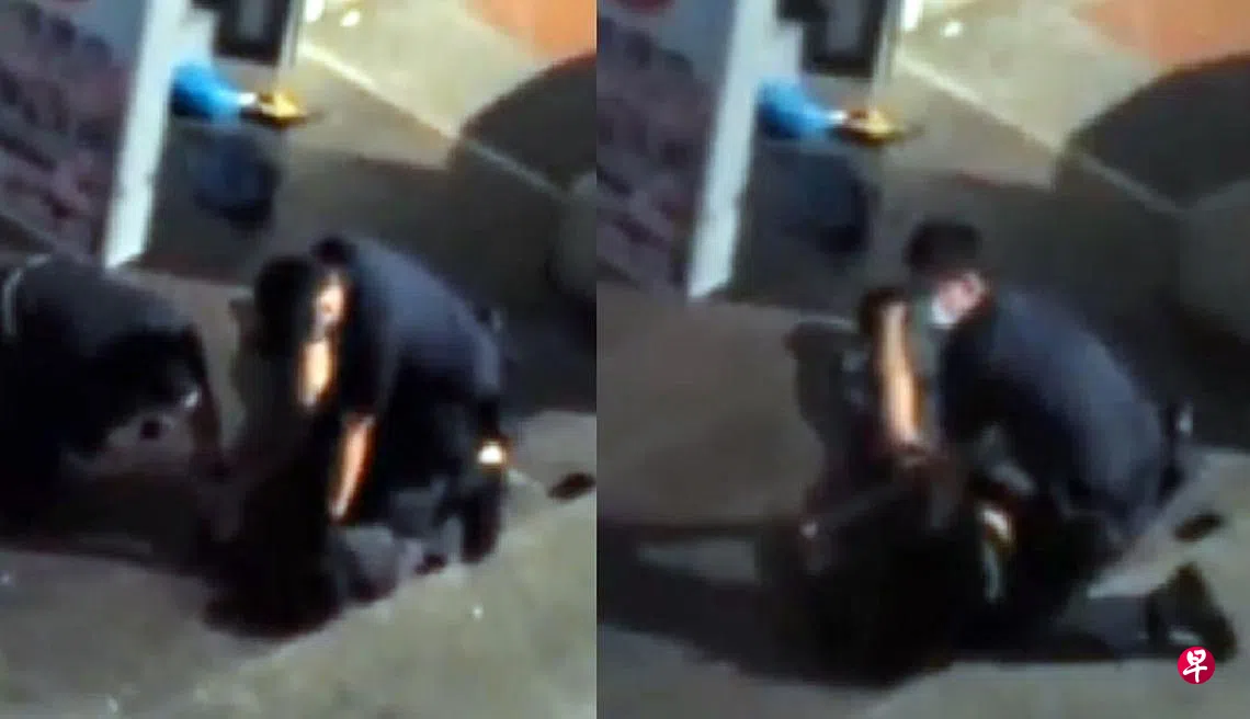 网民的视频显示,身穿黑衣的醉汉躺在店外的走道上,被两名警员制服后还一度大喊大叫。他最后总算意识到自己闯了祸,才连声“对不起,警官”,反复向精警员求饶,