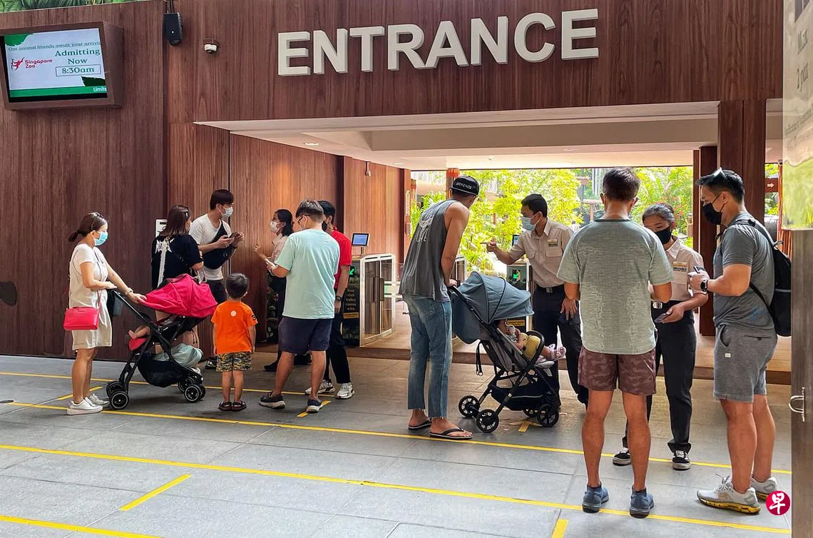 (早报讯)本地旅游景点即日起只允许完成冠病疫苗接种者进入,动物园和圣淘沙的景点已采取措施,安排工作人员在入口处检查访客的疫苗接种证明,有少数人不知道新条例今天生效而被拒于门外。
