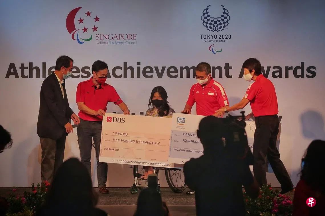 在本届残奥会获得两枚金牌,将个人残奥金牌数量增至五枚的叶品秀将获得80万元,其中百分之二十的奖金将回馈给将给新加坡残疾体育理事会(SDSC)和全国残奥理事会。