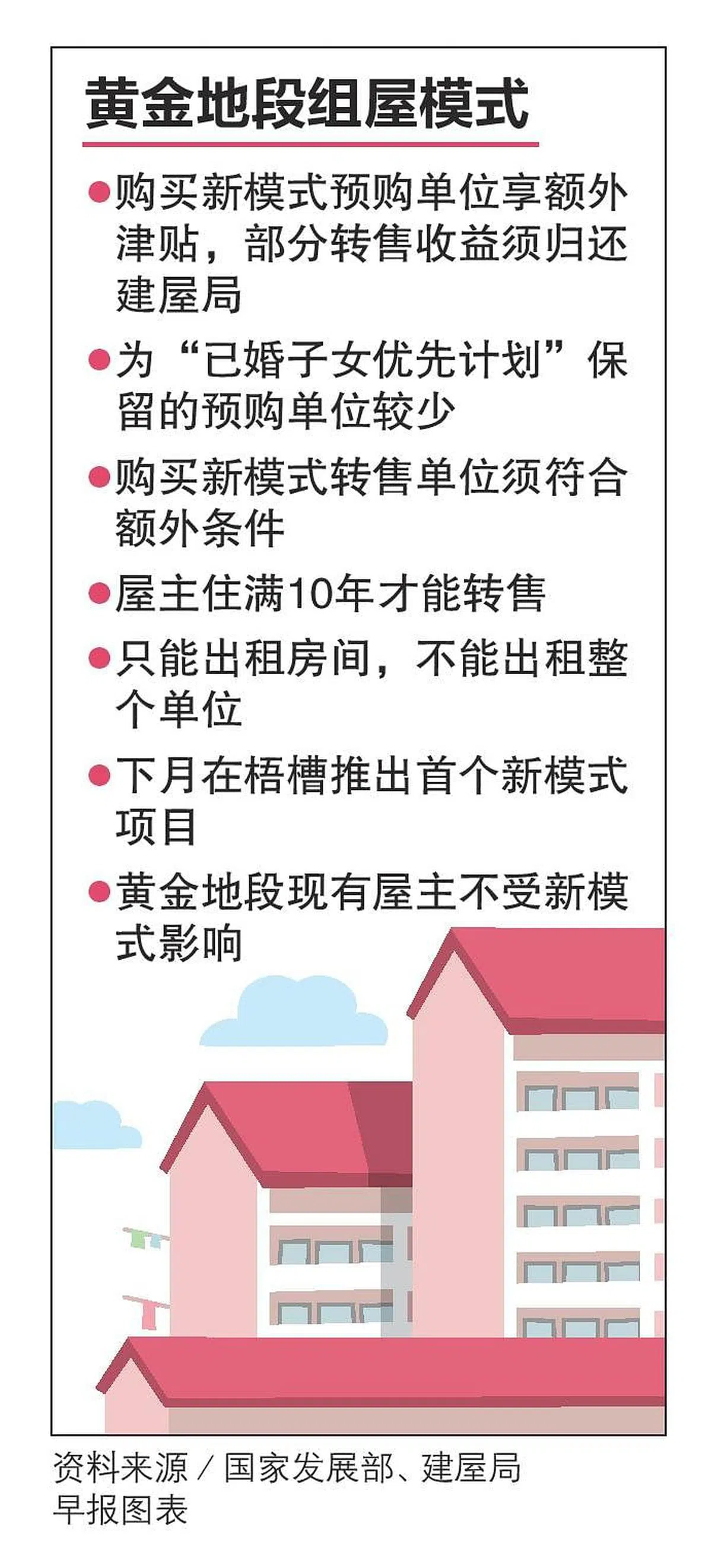 (早报讯)下个月推出的位于惹兰勿刹地铁站旁的梧槽预购组屋项目,将率先实行新的“黄金地段组屋模式”。新加坡公民在此模式下购买预购组屋将享有额外津贴,但屋主须住满10年才能转售,并将部分转售收益归还建屋发展局。