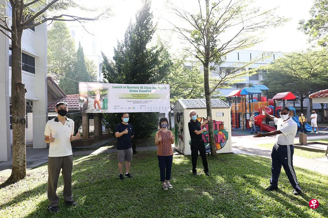 此外,为方便人们共用清洁工具,并以更有效和永续的方式捡垃圾,公共卫生理事会将逐步在不同组屋区里设置“清洁工具厢”(CleanPod),提供铁钳子、水桶和推车。首个邻里“清洁工具厢”今天在武吉巴督第225座组屋楼下启用,该地点毗邻今年4月新开放,颇受居民欢迎的“富士山丘公园”(Fuji Hill Park)。