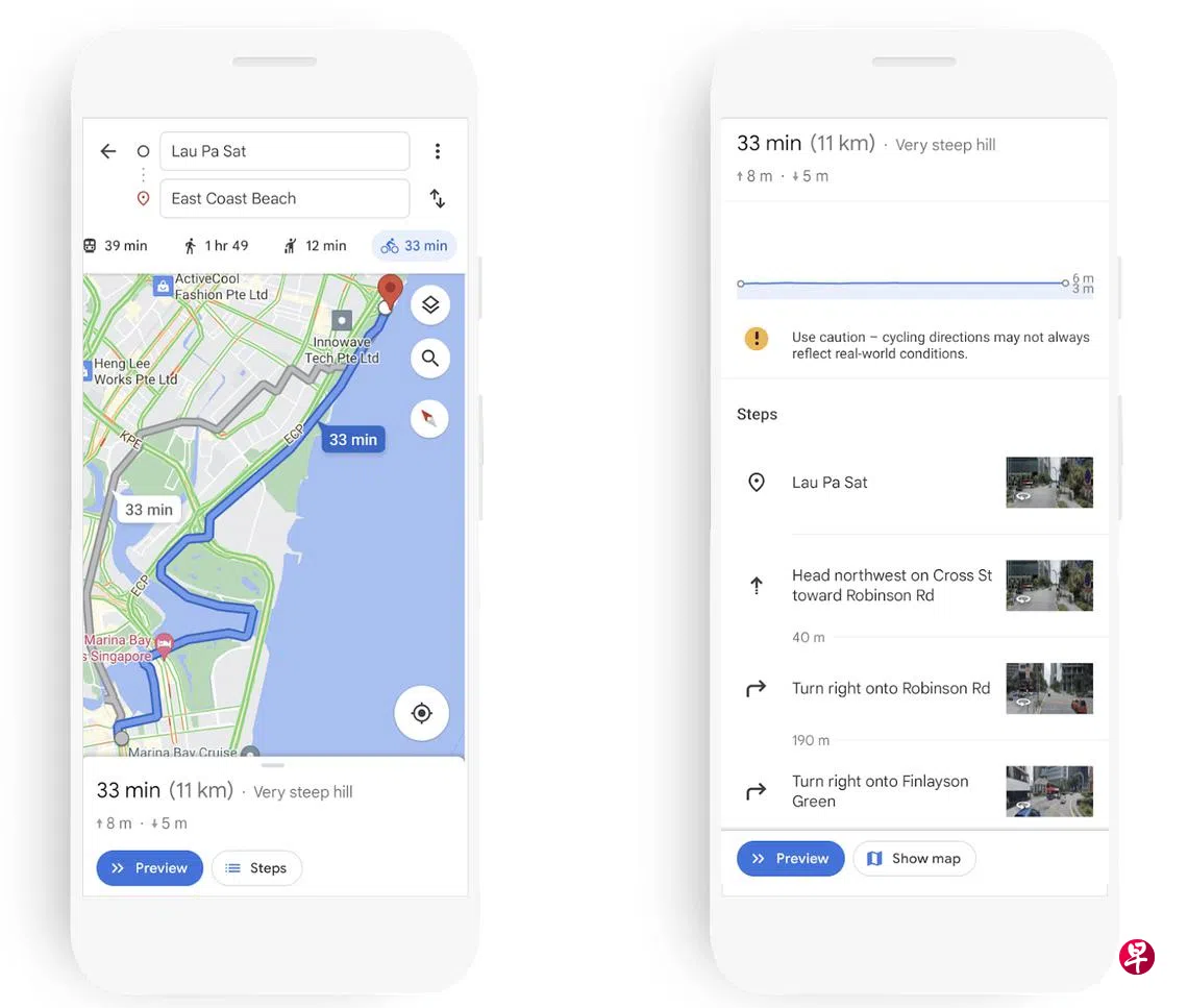 新加坡是首个拥有这个新谷歌地图脚踏车导航功能的东南亚国家。此导航功能结合了陆路交通管理局和国家公园局的骑行道路数据及限制,骑士可通过谷歌地图了解连接本地各大公园和自然区的绿色廊道、专属骑行道,以及获推荐适合脚踏车行驶的路径。
