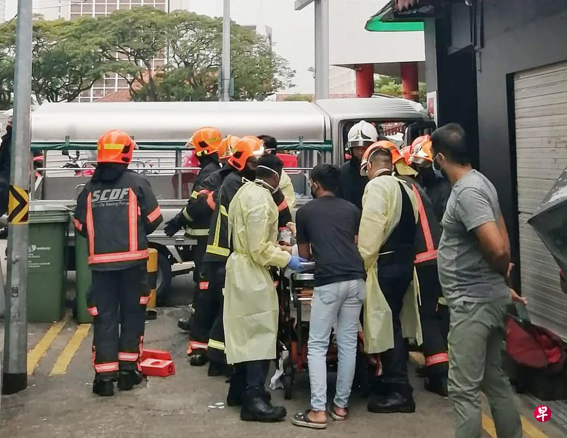 这起事故发生在今天(11月8日)早上11时10分,地点是惹兰勿刹一带,靠近小印度。一辆货车不知何故失控撞向柱子,司机受困车内。