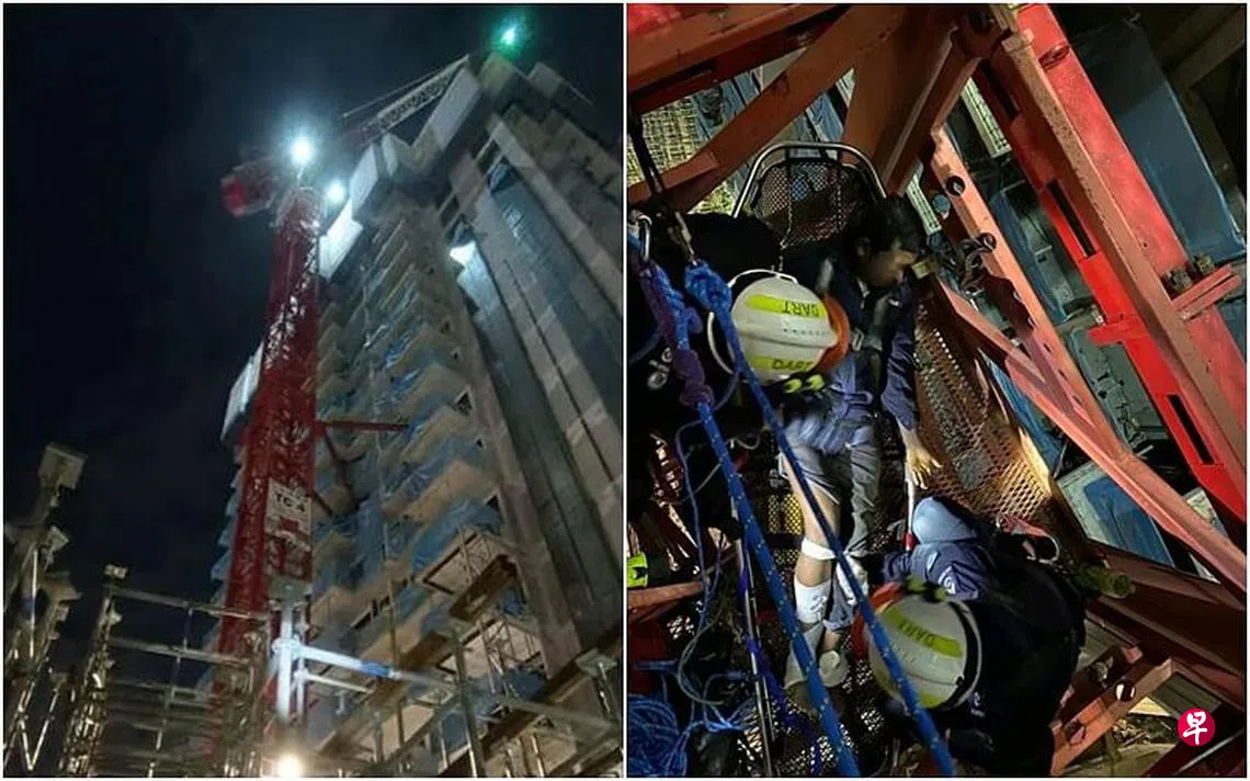 据当局了解,一名起重机操作员当时正在70米高的控制室里工作,但他不知何故伤了腿部,无法自行从高台上爬下来。