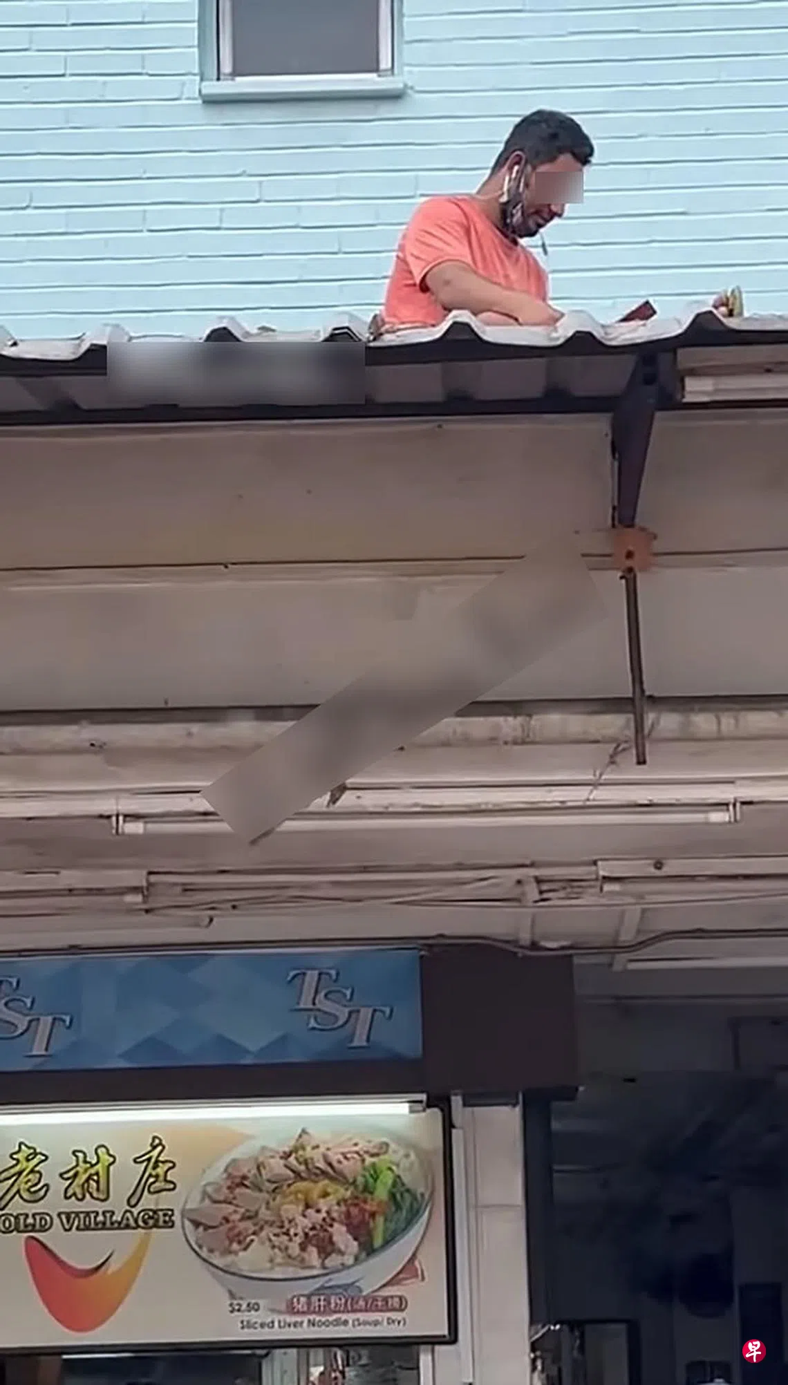 社交媒体主页“Beh Chia Lor”今日上载一段时长7秒的视频,从画面中,可见一名男子将口罩拉至下巴,旁若无人地坐在二楼屋顶吃饭和玩手机。