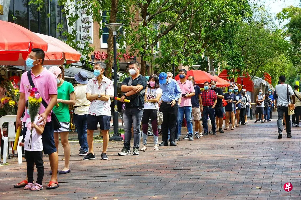 今早的入场情况十分顺畅,工作人员会在入口处先检查公众的证件号码,并要求访客使用合力追踪应用或携手防疫器进行SafeEntry登记。由于庙内人数限制在50人,到了早上约10时开始有比较多信徒到访,庙外又排起了约20人的队伍。