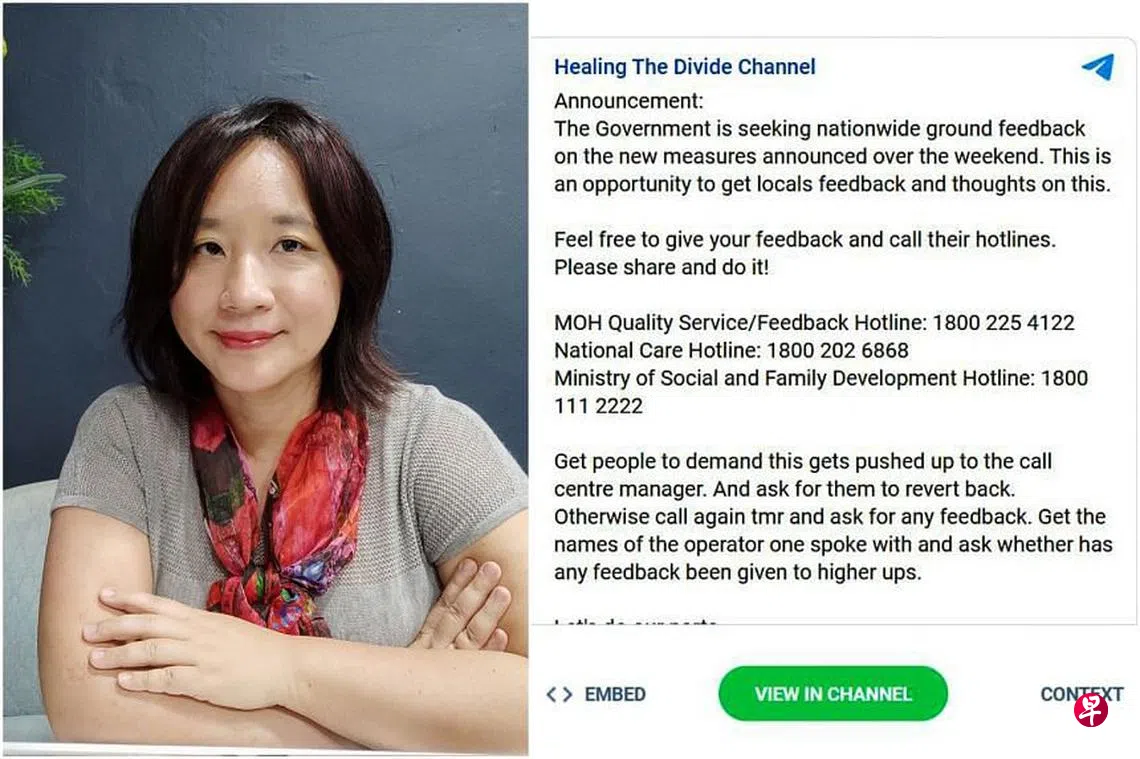 两人在聊天群里贴文称,政府正在针对新措施收集公众意见,公众因此应拨打卫生部和社会与家庭发展部等政府部门热线反馈。两人也在贴文里煽动聊天组成员,隔天再一次拨打热线。两人也煽动成员,针对政府对未接种疫苗公众采取的措施,向当局提出反馈。