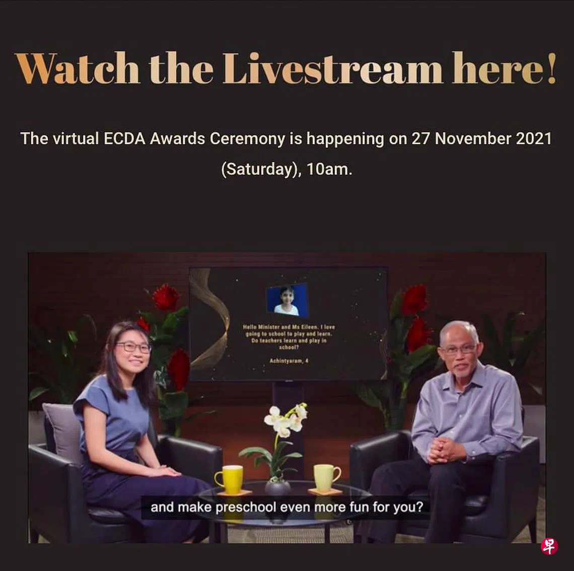 这个自2013年起由幼儿培育署举办的颁奖礼今天(11月27日)在线上举行,长老会社区服务裕廊西托儿中心的资深学习支援教育工作者苏西拉(A. Susila)获颁杰出早期介入服务专才奖。苏西拉(55岁)有超过30年的幼教经验,在长老会社区服务于2003年推出早期介入服务时就参与工作,2007年从幼教教师转为学习支援工作者,一对一地指导有需要的孩童。