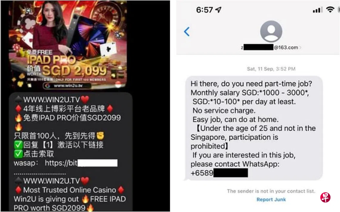 本地出现新型诈骗手法,骗子通过电邮向受害人发送短信,内容包括高薪招聘兼职人员,或以丰厚的奖励诱骗受害者登录赌博平台等,电邮地址多以“@163.com”为结尾。