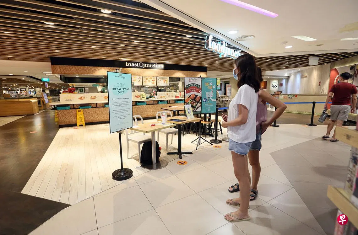 昨日(12月4日),位于碧山第8站(Juntion 8)的福将坊(food junction)入口处摆放告示牌,指本月4日至13日禁止堂食,14日才恢复。执勤的职员也一再向前来光顾的顾客声明,只提供外带服务。