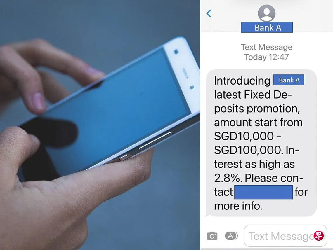 警方日前发布文告,短信诈骗又卷土重来,骗子会冒充银行发送推销高利率定期存款的短信给受害人。短信内会提供联系号码,引诱受害者拨打号码了解活动详情。